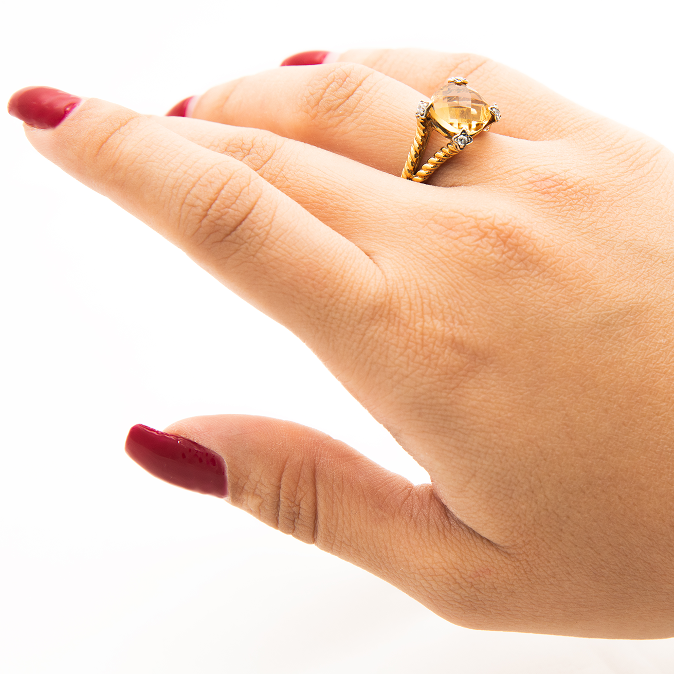 انگشتر نقره زنانه طرح رویال عیار۹۲۵ با سنگ سیترین