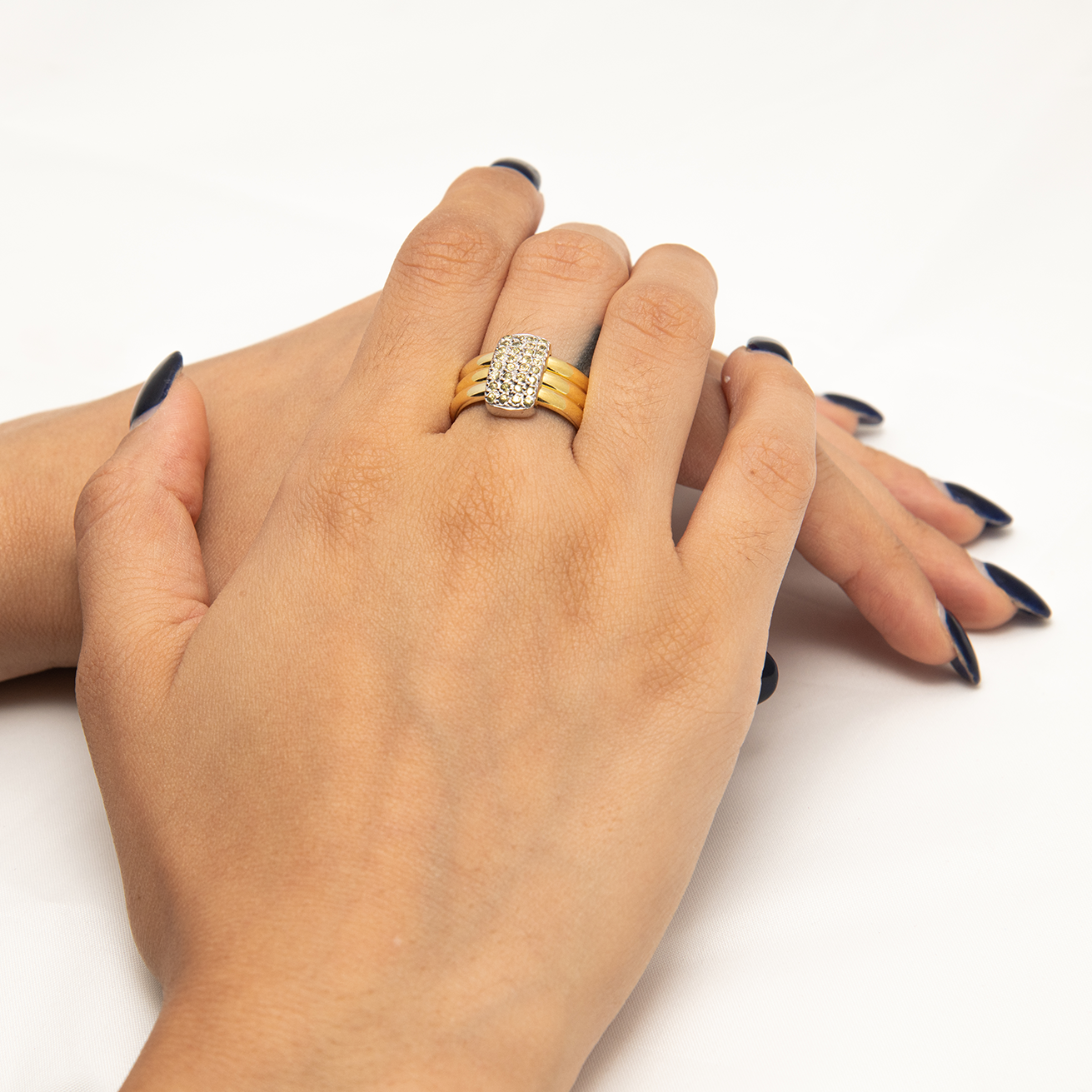 انگشتر زنانه نقره طرح خشت عیار۹۲۵ با سنگهای زیرکونیا
