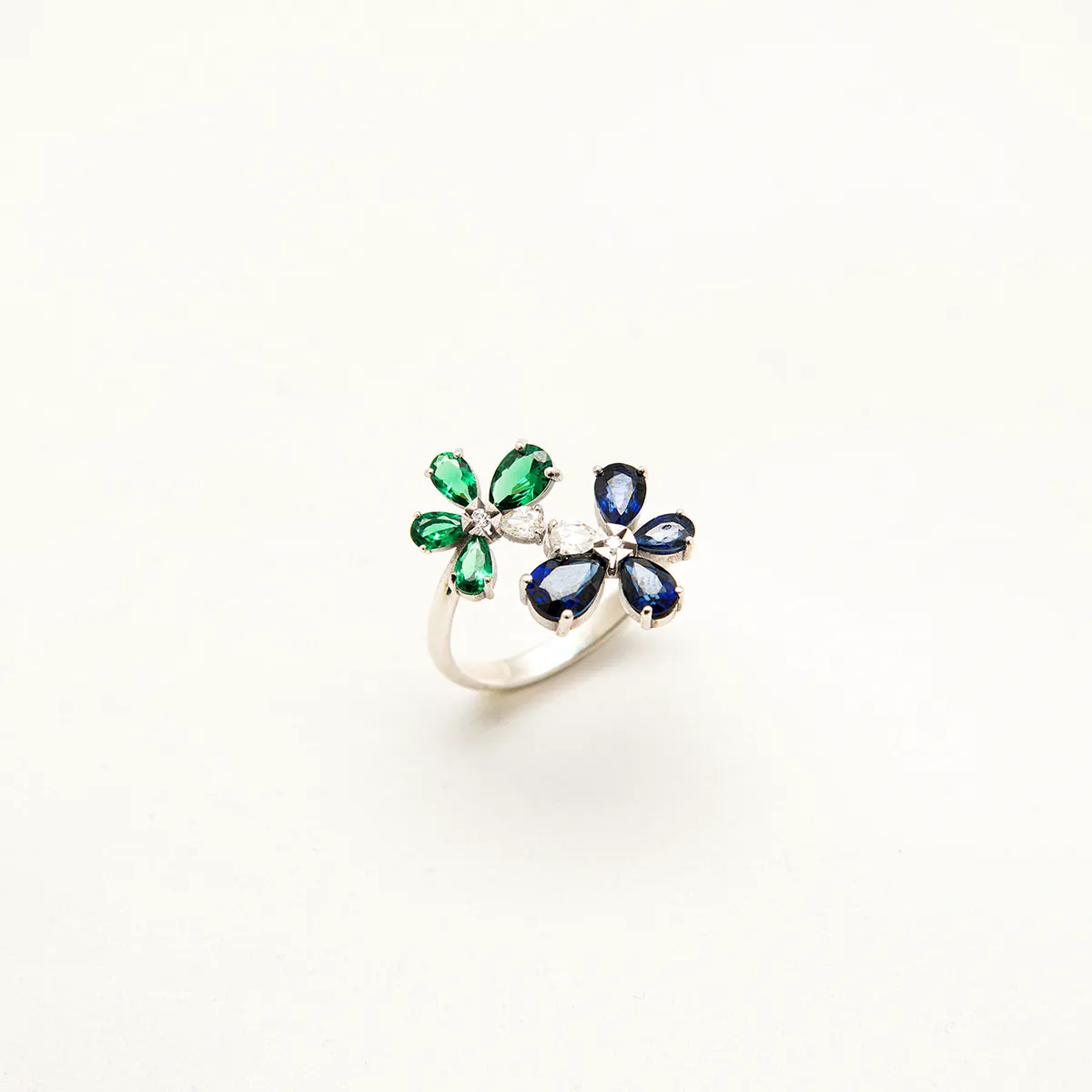 حلقه نقره زنانه طرح بهار عیار ۹۲۵ با نگین های زیرکونیا