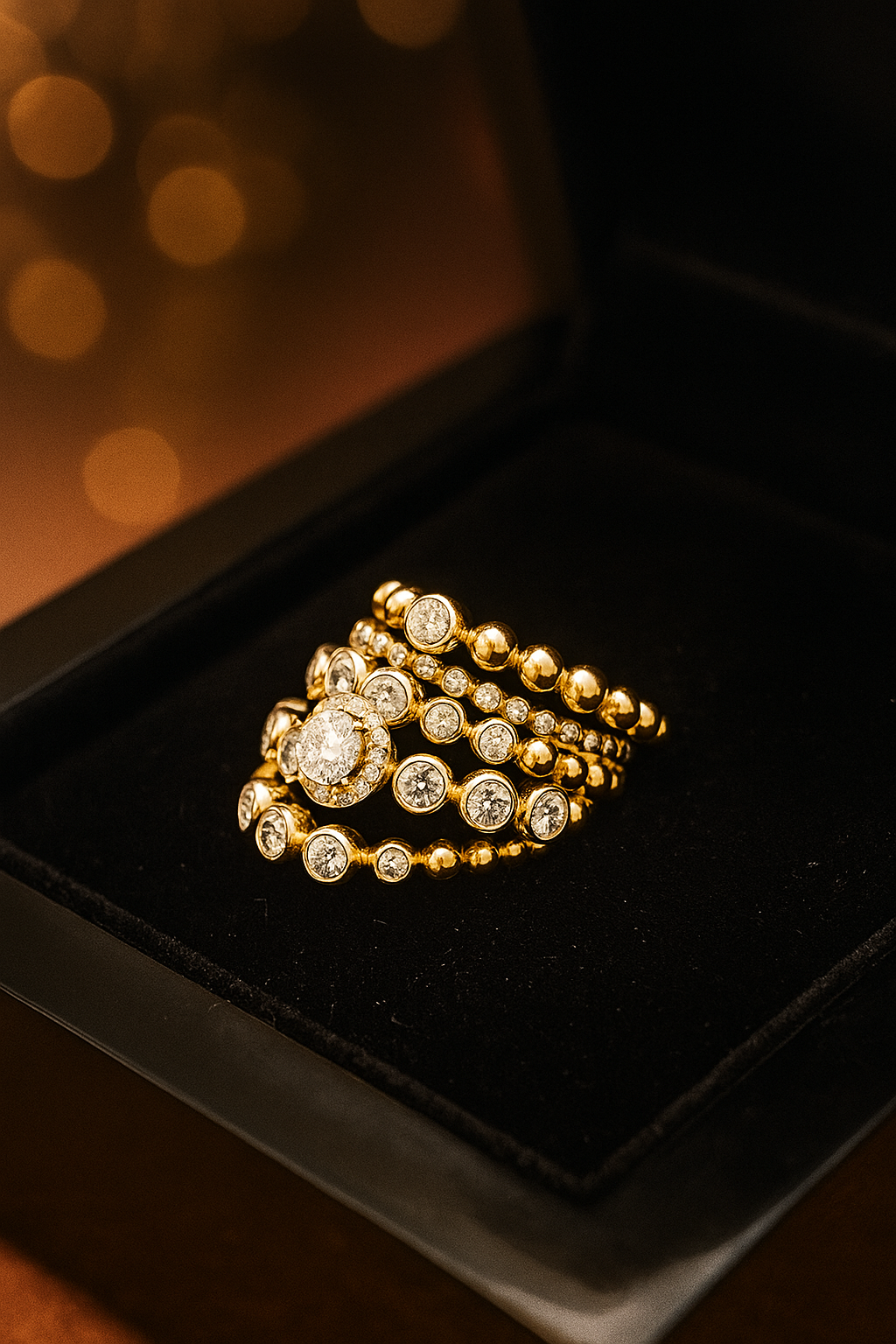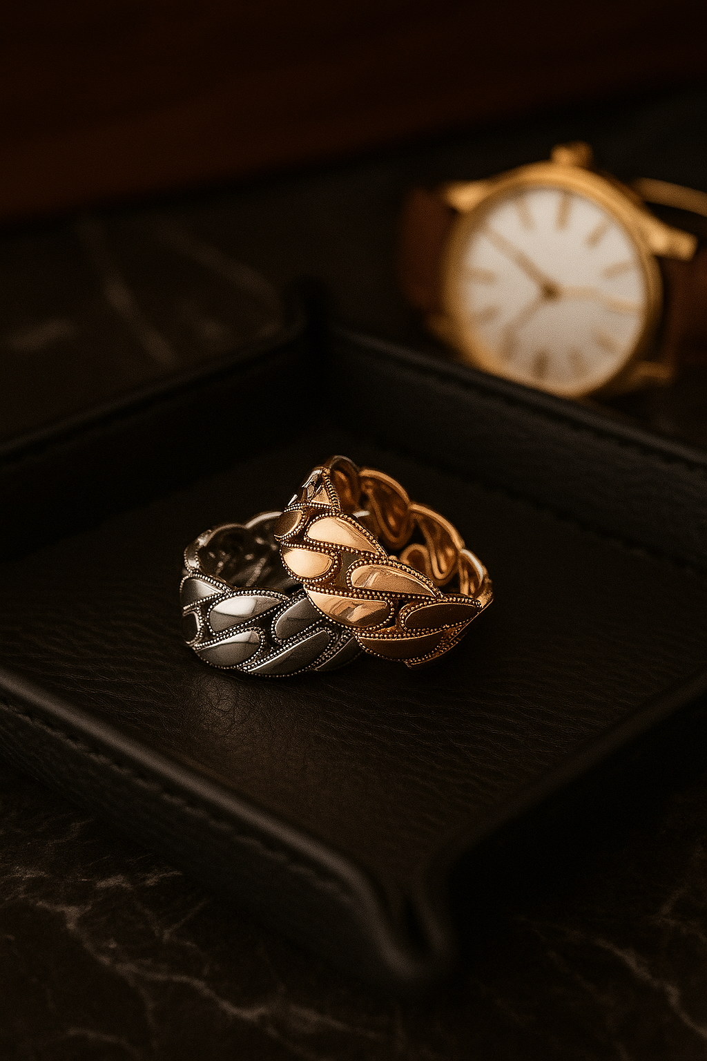 - اگر انگشتها بلند و کشیده هستند → حلقههای پهنتر و طراحیهای جسورانه جذاب میشوند.