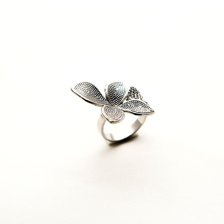 انگشتر نقره زنانه طرح ارکید عیار۹۲۵ با سنگهای زیرکونیا