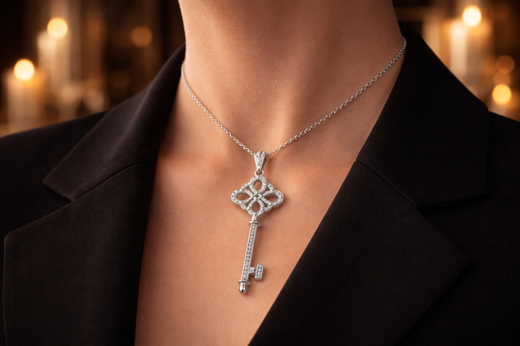 گردنبند «کلید اقبال» ترکیبی از طراحی نمادین و ظرافت جواهر است؛ کلیدی که قرار نیست فقط روی گردن بدرخشد، قرار است معنا داشته باشد.