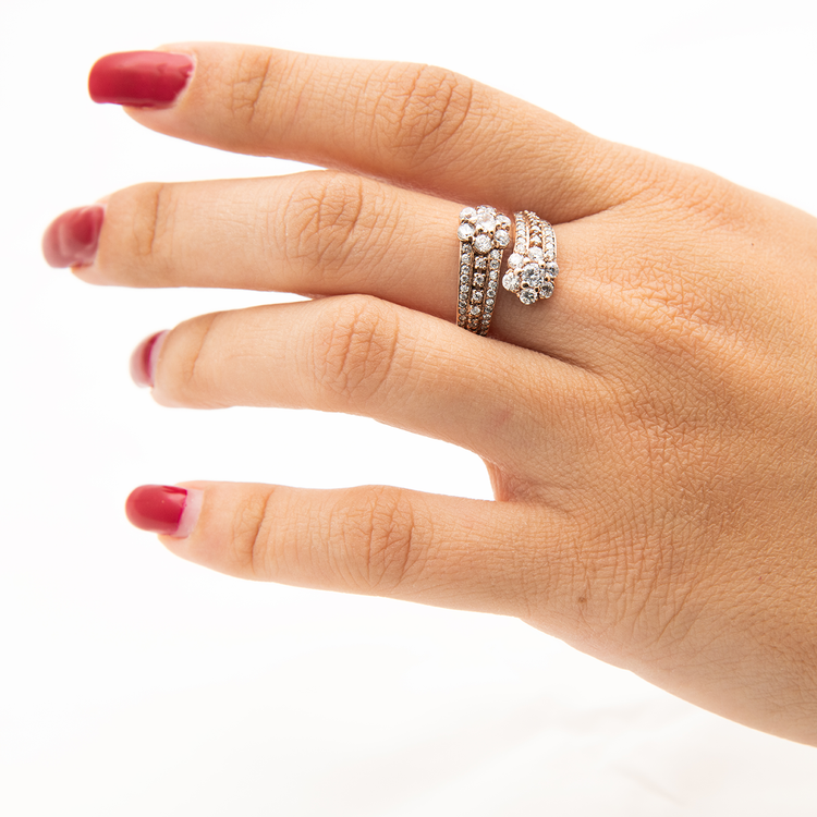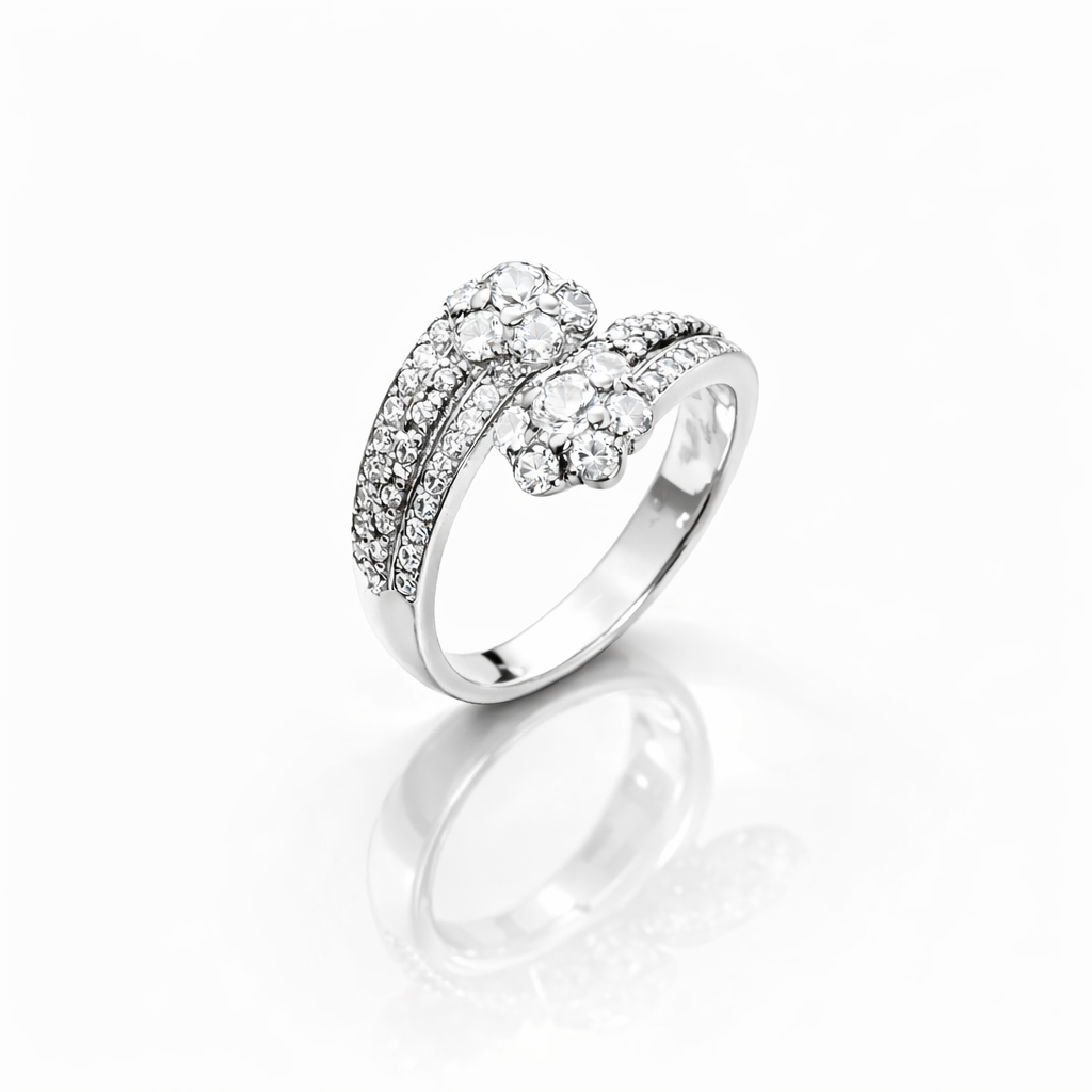 انگشتر نقره ۹۲۵ گلدار لوکس | جواهرات دستساز اصیل با نگینهای درخشان