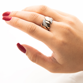 این انگشتر نقره ۹۲۵ از نقره خالص عیار ۹۲۵ ساخته شده که با روکش سفیدیا طلایی، ظاهری گرم و جذاب به آن بخشیده است. طراحی آن شامل عناصر منحنی و متصل به هم است که برخی از آنها با نگینهای ریز پوشیده شدهاند، و نور را به زیبایی بازتاب میدهند. وزن سبک (حدود ۷-۹ گرم بسته به سایز) و ساختار ارگونومیک آن، راحتی استفاده روزانه را تضمین میکند. سایزهای موجود از ۵۰ تا ۵۴با امکان سفارشیسازی، این جواهرات نقره دستساز را برای هر دستی مناسب میسازد. هر قطعه توسط هنرمندان ماهر ارتیسان گلد با تکنیکهای پیشرفته و سنتی ساخته شده تا اصالت و دوام آن حفظ شود.