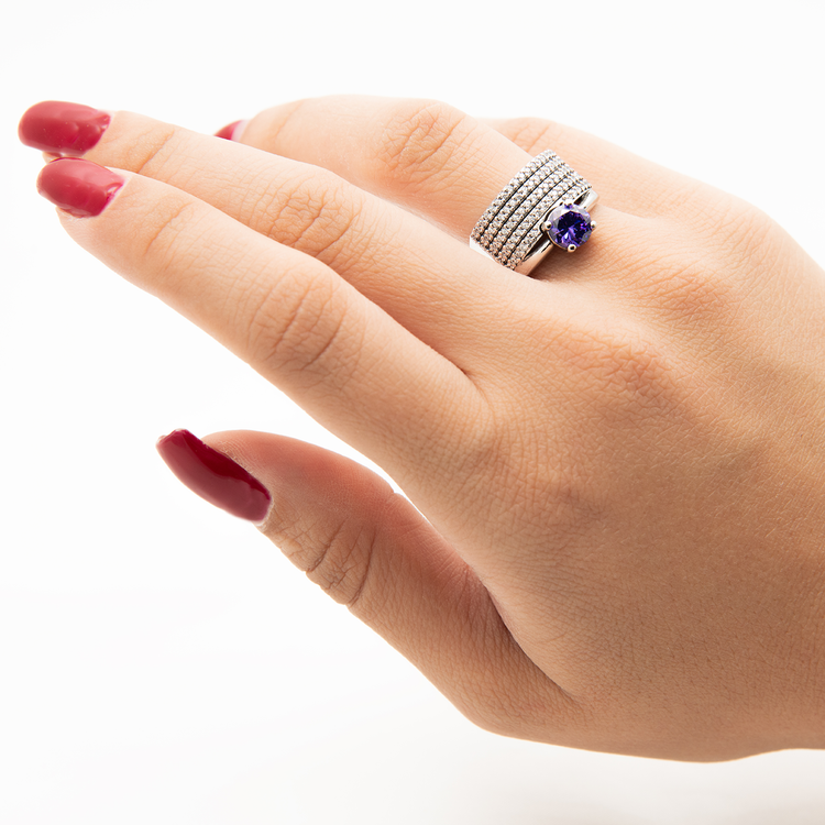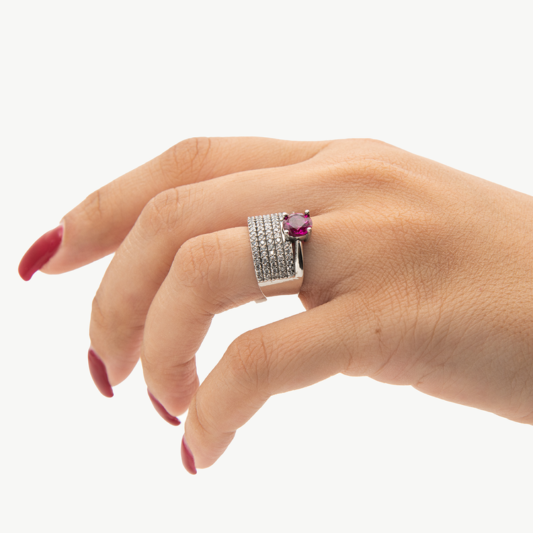 انگشتر نقره زنانه طرح رویال عیار۹۲۵ با سنگهای زیرکنیا