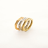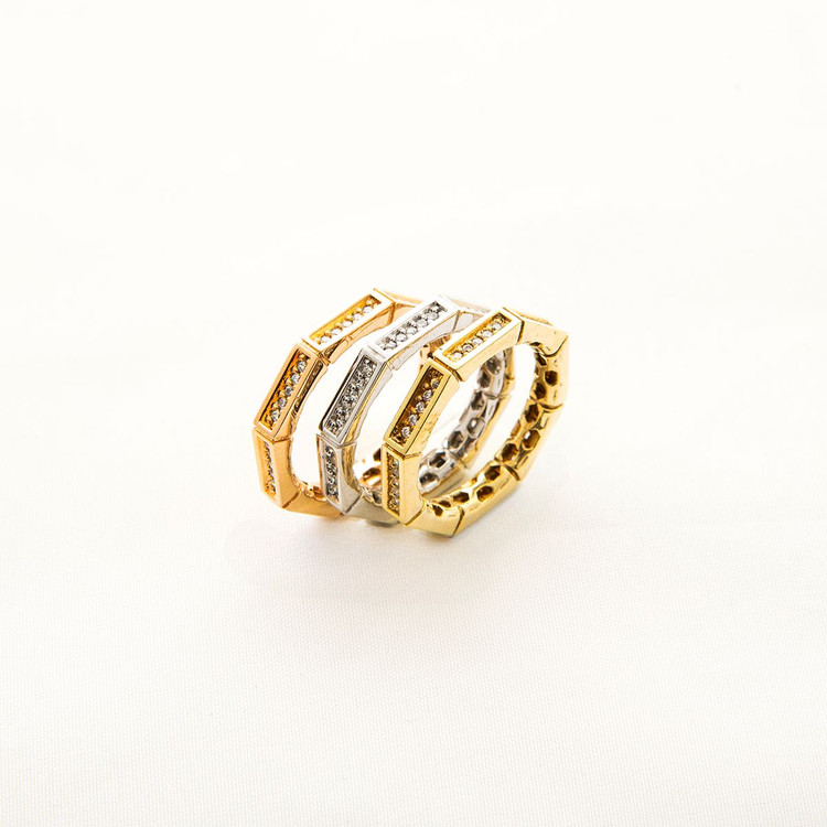این ست انگشتر نقره عیار ۹۲۵ شامل سه مدل زیبا در رنگهای طلایی، رزگلد و نقرهای است که با طراحی ششضلعی هندسی مدرن، نمادی از تنوع و elegance هستند. هر انگشتر با نگینهای ریز برلیانمانند (زیرکونیا شفاف) تزئین شده و بافت مشبک، درخششی لوکس ایجاد میکند. وزن تقریبی هر کدام ۴-۶ گرم و سایز قابل تنظیم، آنها را برای استک کردن، استفاده روزمره یا مجالس شیک ایدهآل میسازد. این ست انگشتر نقره زنانه برای بانوان مدگرا، علاقهمندان به جواهرات لایهدار و کسانی که هدیهای متنوع و خاص برای مناسبتها میخواهند، مناسب است.