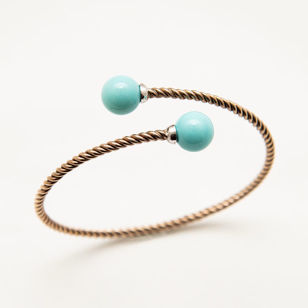 دستبند نقره زنانه طرح پیچ مهتاب عیار۹۲۵ با سنگ فیروزه