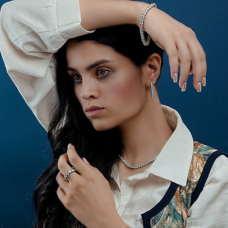 بدنهی دستبند بهصورت کاملاً دستساز و با دقتی میکرونی ساخته شده تا هر نگین در جای خود با استحکام و زیبایی قرار بگیرد. نتیجه، دستبندی سبک، راحت روی دست و در عین حال فوقالعاده چشمگیر است