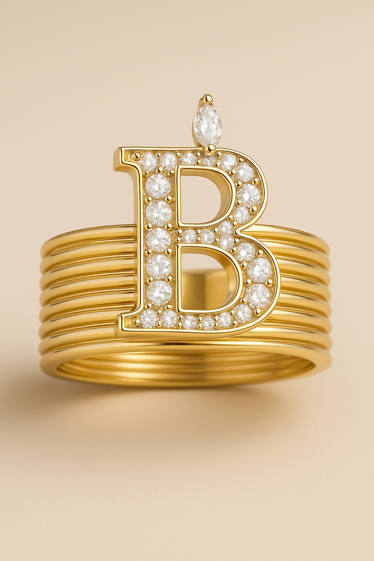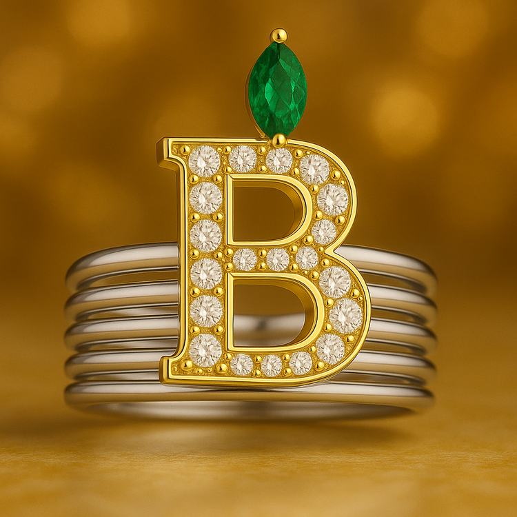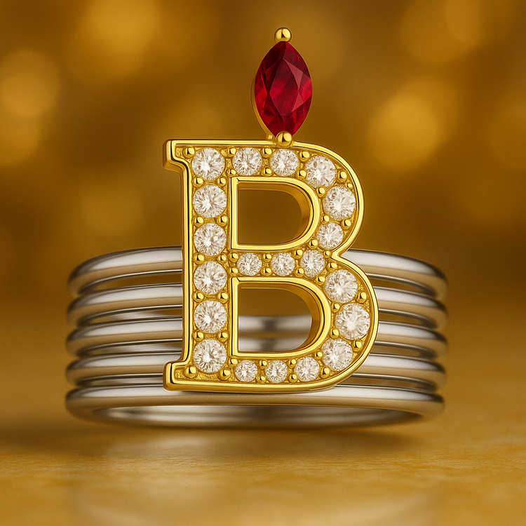 در این انگشتر، حرف اول اسم شما بهصورت لوکس روی حلقه قرار میگیرد و بالای آن یک سنگ رنگی بر اساس ماه تولد مینشیند؛ ترکیبی کاملاً شخصی برای هدیهدادن به خودتان یا عزیزتان.